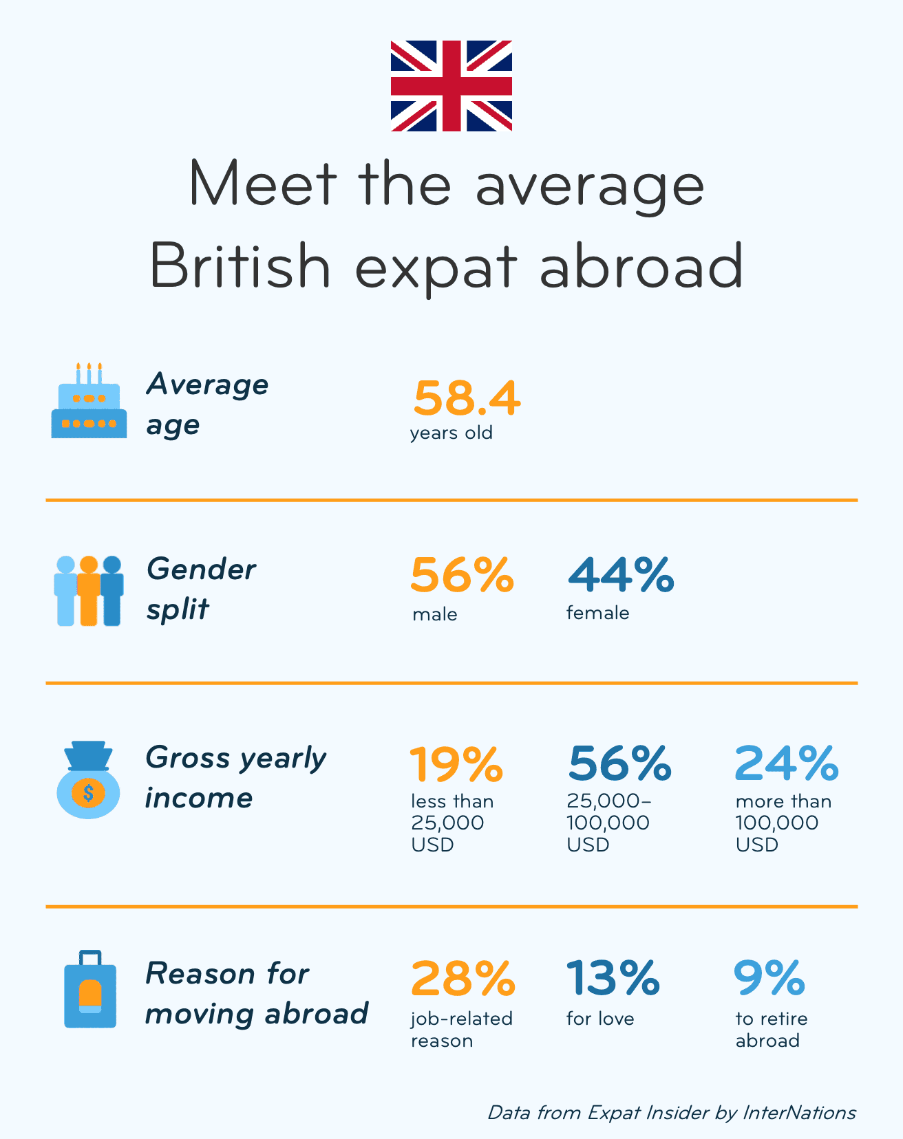 The most common reasons for Brits to move abroad are for love (following their partner to their home country) and for a better quality of life (with more reliable weather).