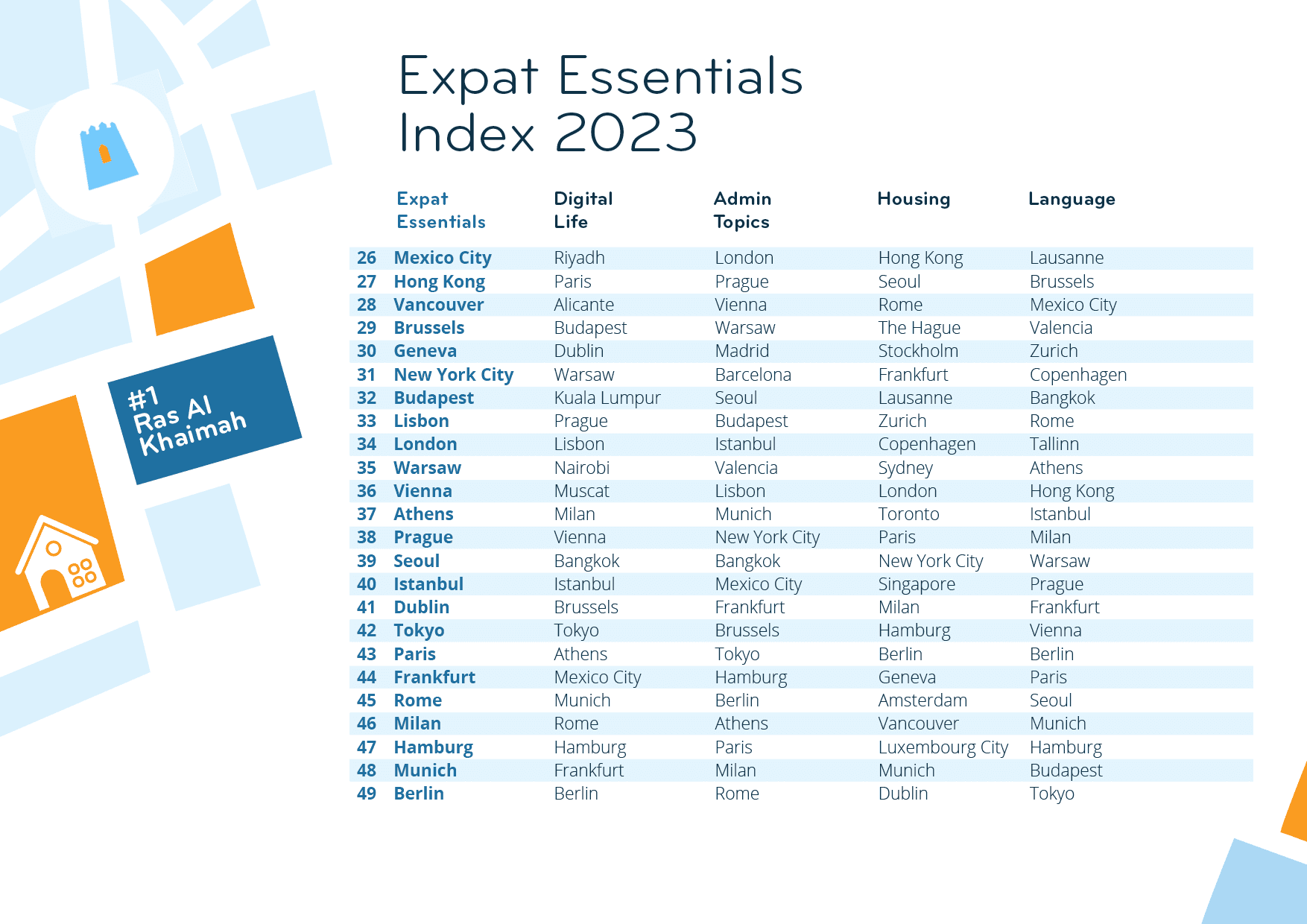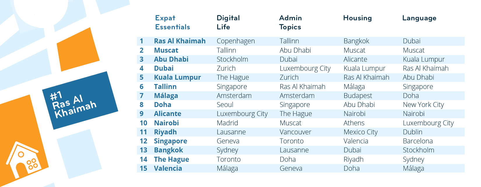 Expats moving to Ras Al Khaimah in the UAE don’t seem to face many problems getting started. In fact, the city, which ranks 1st in the Expat Essentials Index, lands in the top 10 for three of the four underlying subcategories. Expats for example agree that it’s easy to live there without speaking the local language (5th), and it’s one of the easiest places worldwide for getting a visa (3rd).
